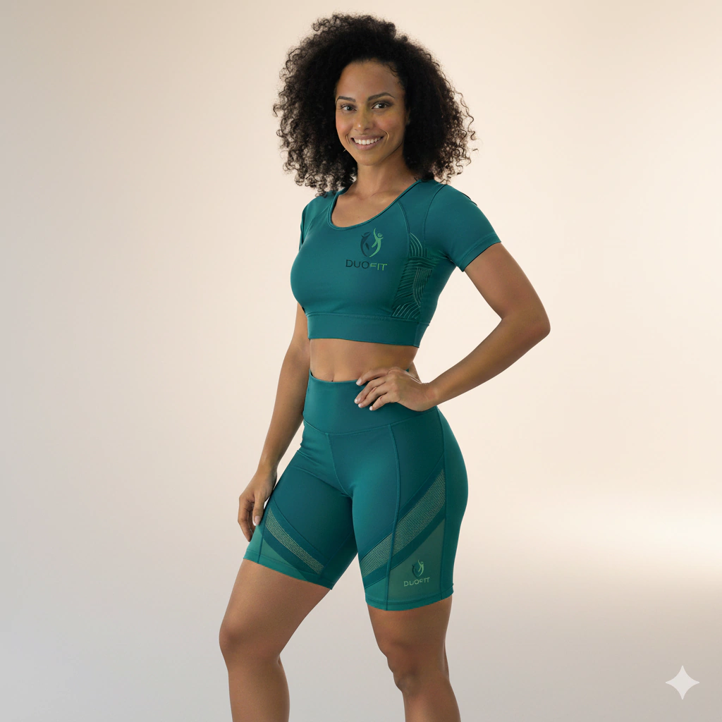 Nosso Conjunto Short + Top foi desenvolvido para proporcionar liberdade de movimento, sustentação e muito charme. Perfeito para quem busca performance aliada a um visual descolado e confortável.